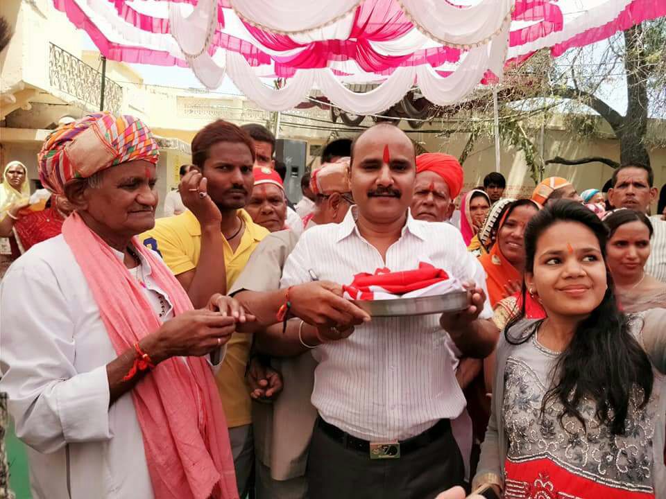 समारोह में नवनिर्मित मां श्रीयादे मंदिर पर ध्वजा स्थापना के लिए राशि देने पर भामाशाह नाथूलाल गांव गूडा किशन लाल गांव गूडा तथा तथा स्वर्ण कलश के लिए अर्थ सहयोग देने पर भामाशाह मांगीलाल गूडला सहित कई समाजजनो ने बढ चढ कर   विकास का मंदिर निर्माण में योगदान देने वाले समाज जनों का सम्मान किया गया