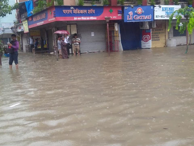 मुंबई में देर रात से लेकर सुबह तक तेज बरसात का दौर जारी होने से मुंबईकरों का बुरा हाल है। ऐसे में सड़कों पर जगह-जगह बने गड्ढे जानलेवा साबित हो रहे हैं। कुर्ला और नालासोपारा में भारी बारिश हुई है। ट्रेन सेवाएं भी प्रभावित हुई हैं।