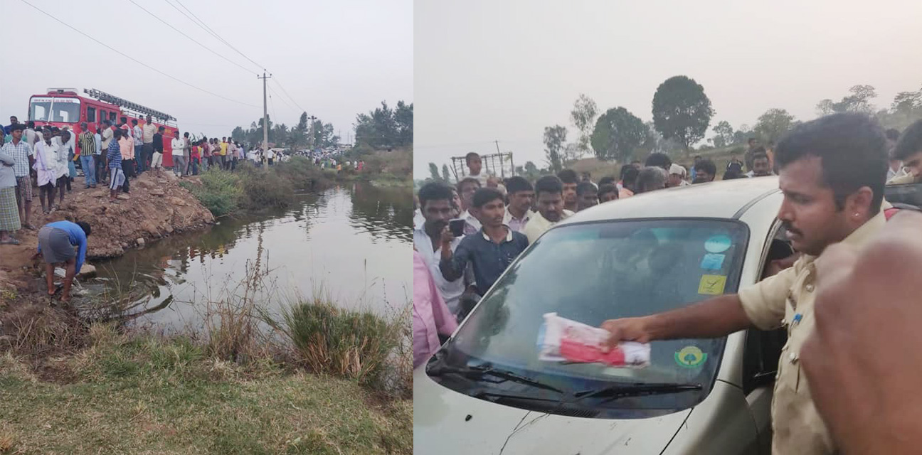 कोलीमने गाँव में स़डक के किनारे बरसाती पानी से भरे तालाब के पास उनकी कार का संतुलन बिग़ड गया और कार का आगे का हिस्सा तालाब में डूबने लगा।