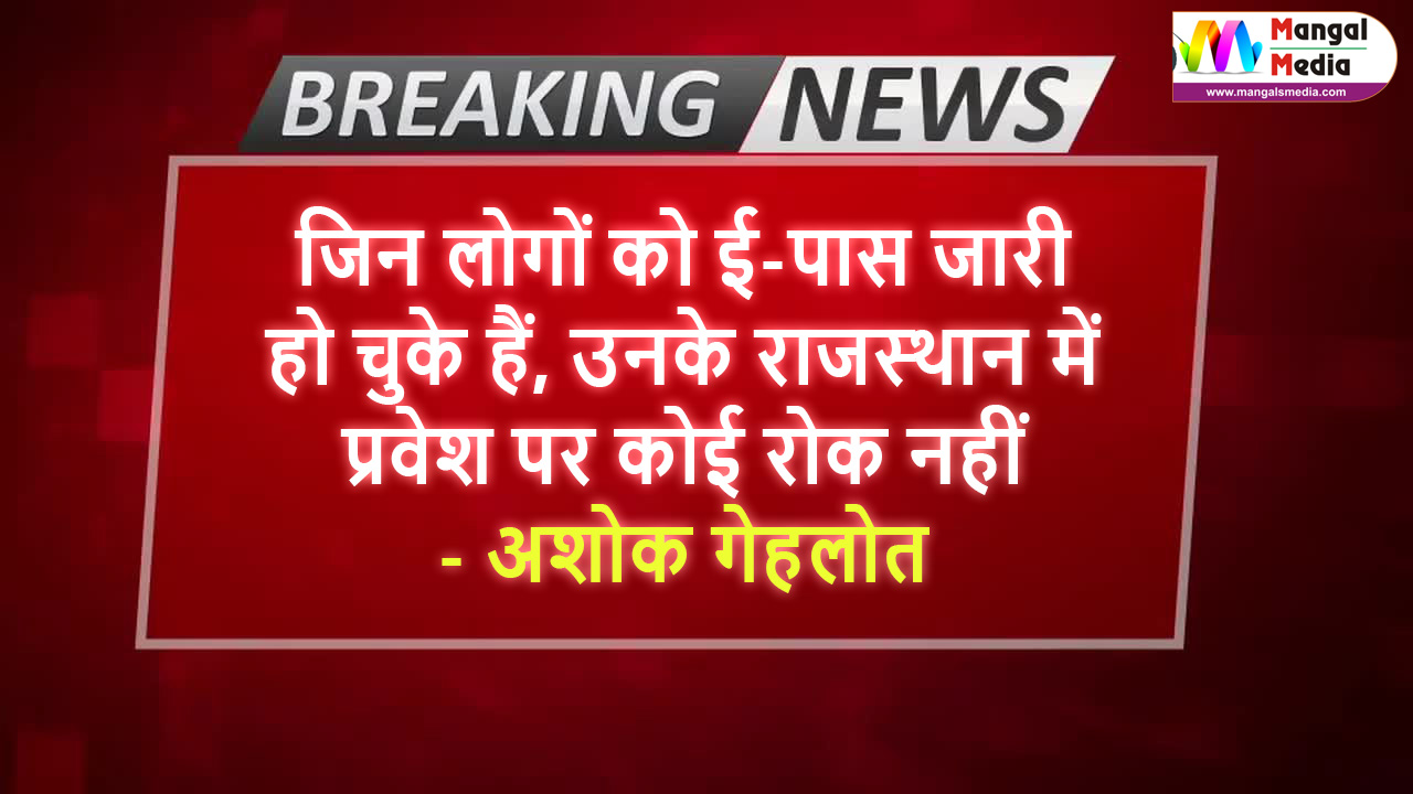 कोरोना महामारी के संकट के समय में बॉर्डर पर फसे हुए राजस्थानी प्रवासियों को लेकर राजस्थान के मुख्यमंत्री ने अपने ऑफिसियल फेसबुक पेज से यह जानकारी दी  है की जिन लोगों को ई-पास जारी हो चुके हैं, उनके राजस्थान में प्रवेश पर कोई रोक नहीं है, उन्हें सिमा के अंदर प्रवेश दिया जा रहा है –