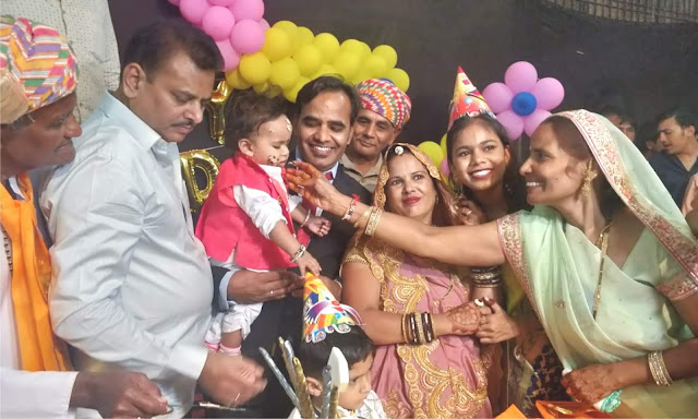 खमनोर / दोलीबाई नाथूलाल प्रजापत (समिदीया) गाँवगूडा अपने सुपोत्र किरण – अमृतलाल ( बडे पापा मम्मी) के लाडले एवं कमला – कान्तीलाल के अपने सुपूत्र प्रोवीत का पहला जन्मदिन गाँवगूडा में स्थित जैन समाज नोहरा में बहुत ही हर्षोल्लास के साथ मनाया गया। शाम 5:00 बजे से ढलती रात तक बधाईया देने के लिए लोगों का ताता लगा रहा। इस दौरान स्नेहभोज का भी आयोजन किया गया। श्याम 7 बजे प्रोवित द्वारा सर्व प्रथम ठाकुरजी के प्रसाद स्वरूप बूंदी लड्डू का भोग लगाने के बाद केक काटकर जन्मदिन की पार्टी का शुभारंभ किया गया I