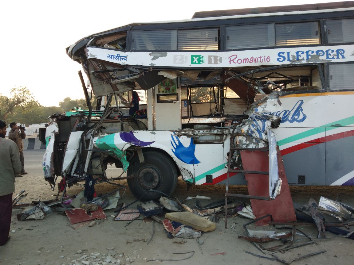 बस और डम्पर में टक्कर से हुआ हादसा