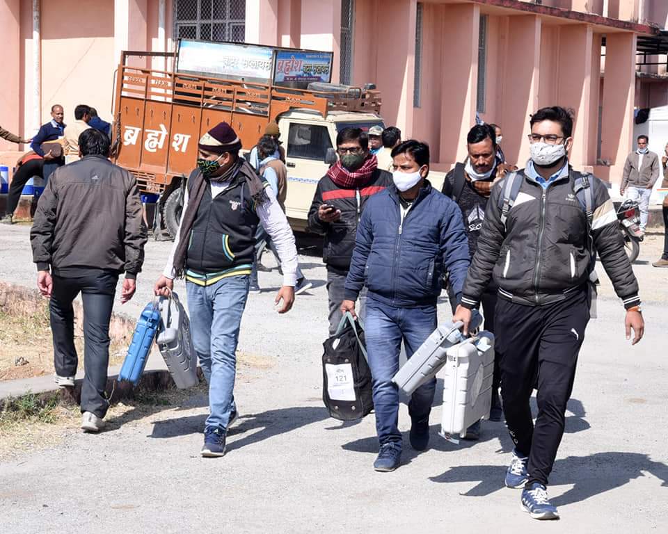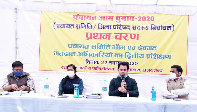 चुनाव पर्यवेक्षक राजेन्द्र भट्ट ने कहा कि इस बार चुनाव में चुनाव (election) कार्य तो जिम्मेदारी के साथ तो करवाना ही है, इसके साथ ही कोरोना महामारी corona) से सर्तकता व सावधानी भी रखनी है। इसके साथ ही आयोग द्वारा जारी गाईडलाईन की पालना करते हुए निर्वाचन कार्य सम्पन्न करवाने है। पर्यवेक्षक राजेन्द्र भट्ट आज रविवार को जिले के राजकीय पालिटेििक्नक महाविद्यालय में जिला परिषद (zila parishad) एवं पंचायत समितियों (panchayat samiti) के सदस्यों के चनुाव के लिये भीम व देवगढ़ के प्रथम चरण में होने वाले प्रशिक्षण में उपस्थित कार्मिकों को अन्तिम प्रशिक्षण में सम्बोधित कर रहे थे।