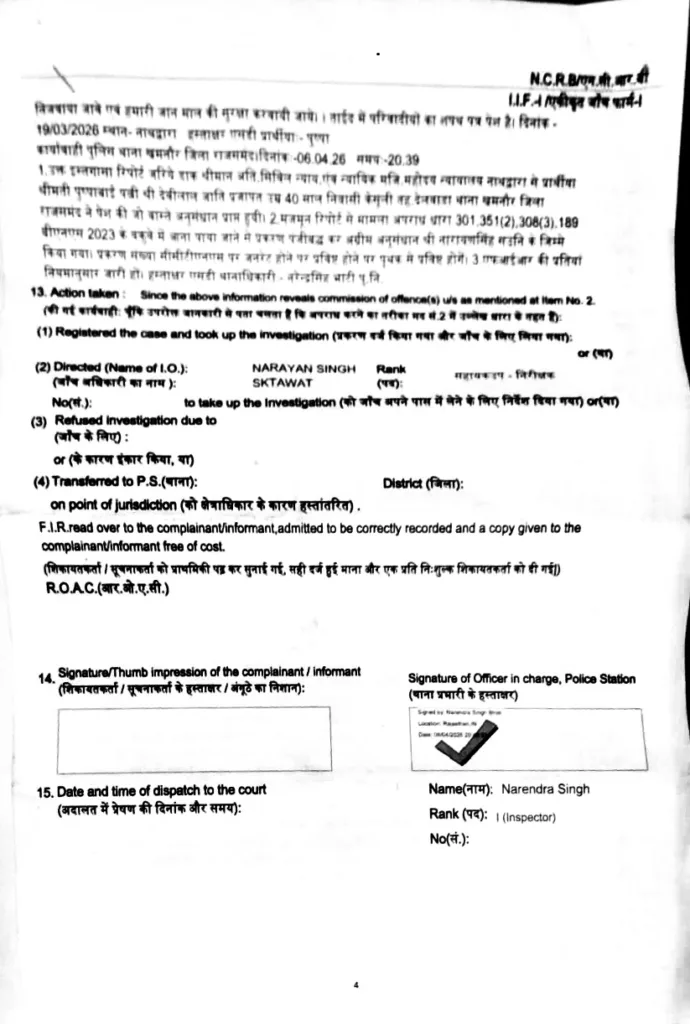 कोर्ट के निर्देश के बाद खमनोर पुलिस ने FIR संख्या 57/2026 दर्ज करते हुए पांच आरोपियों को नामजद किया है: