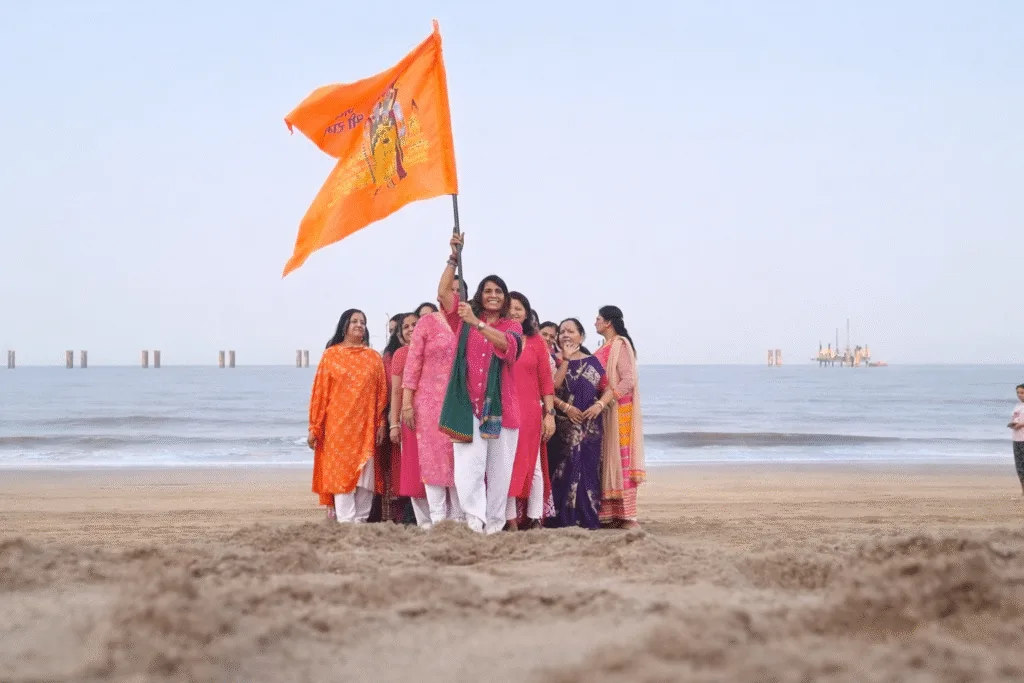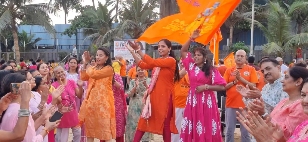सुबह की पहली किरण और समुद्र की लहरों के बीच, भगवा झंडों के साथ श्रद्धालु पारंपरिक गणवेश में नजर आए। यह दृश्य ऐसा लग रहा था मानो पूरा जुहू बीच श्रीराममय (Hindu Festival) हो गया हो।